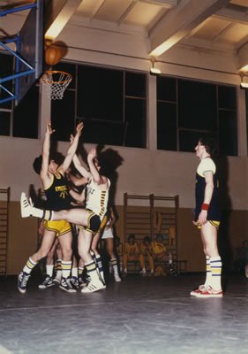 Malacarne Fabrizio al tiro. Sullo sfondo Cardani Achille che va a rimbalzo.