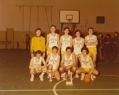 Febbraio 76 - Trofeo città di Lazzate per squadre di 1° Divisione - Virtus Cermenate 1° classificata. In piedi da sinistra Montini (ha giocato influenzato), Porta, Tettamanti, Seveso M., Seveso G., seduti da s. Zuanetti, Malacarne Renzo, Malacarne Renato, Benzoni.
