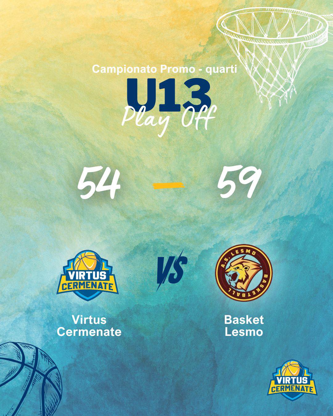 U13 PROMO - PLAY OFF: Virtus Cermenate - Basket Lesmo 54-59