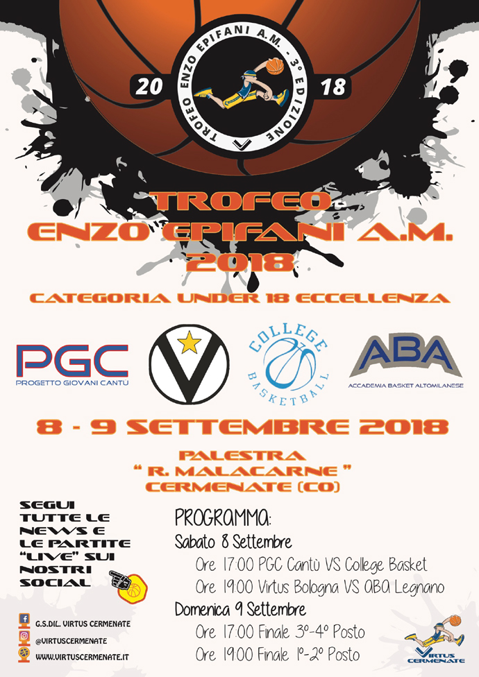 Nel weekend 08-09 settembre torna l'appuntamento col basket Eccellenza Under 18 alla Palestra Malacarne per ricordare uno dei più illustri dirigenti della Virtus, Enzo Epifani.