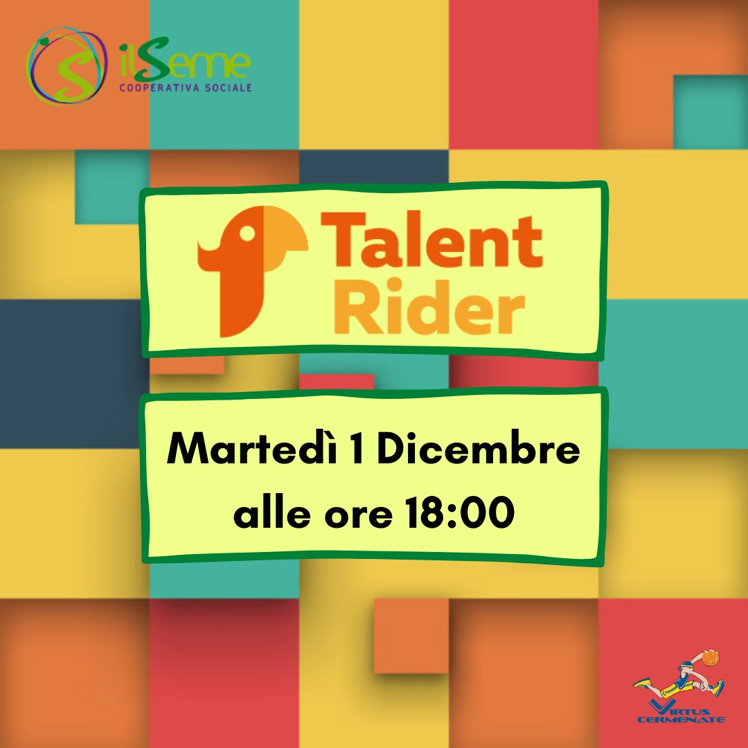 Ti aspettiamo online MARTEDì 1 DICEMBRE ALLE ORE 18:00 per una serata di presentazione del servizio in cui saranno illustrate le opportunità messe a disposizione dal progetto Talent Rider.