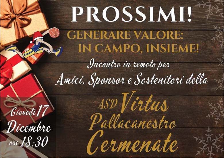 Non potendo organizzare la tradizionale cena riservata a sponsor, partners ed amici, la Virtus organizza un incontro da remoto giovedì 17 dicembre alle ore 18.30 dal titolo: Generare valore: in campo, insieme!