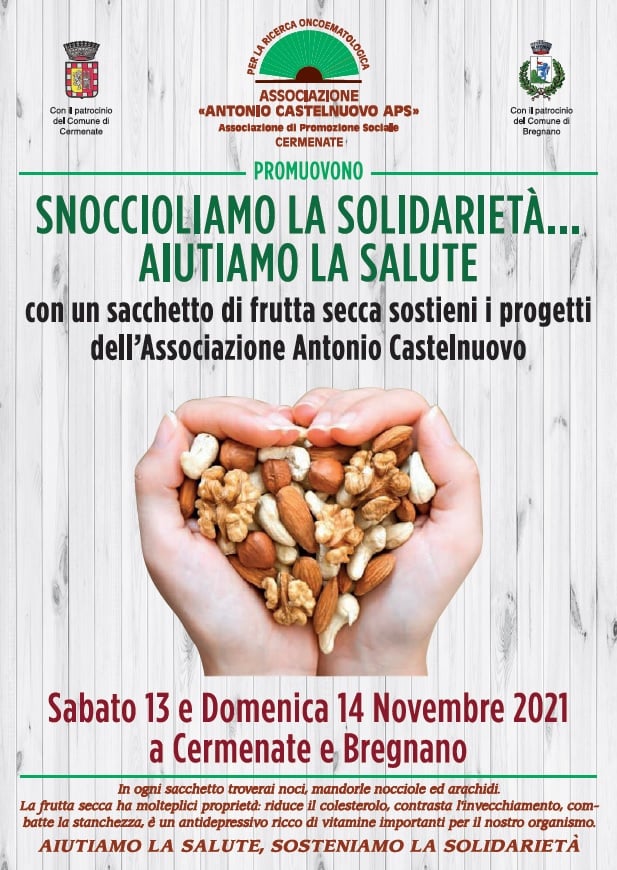 Snoccioliamo la solidarietà... Aiutamo la salute" dell' Associazione "Antonio Castelnuovo" e invitiamo tutti quanti a sostenere i loro progetti in campo oncologico attraverso l'acquisto di un sacchetto di frutta secca.