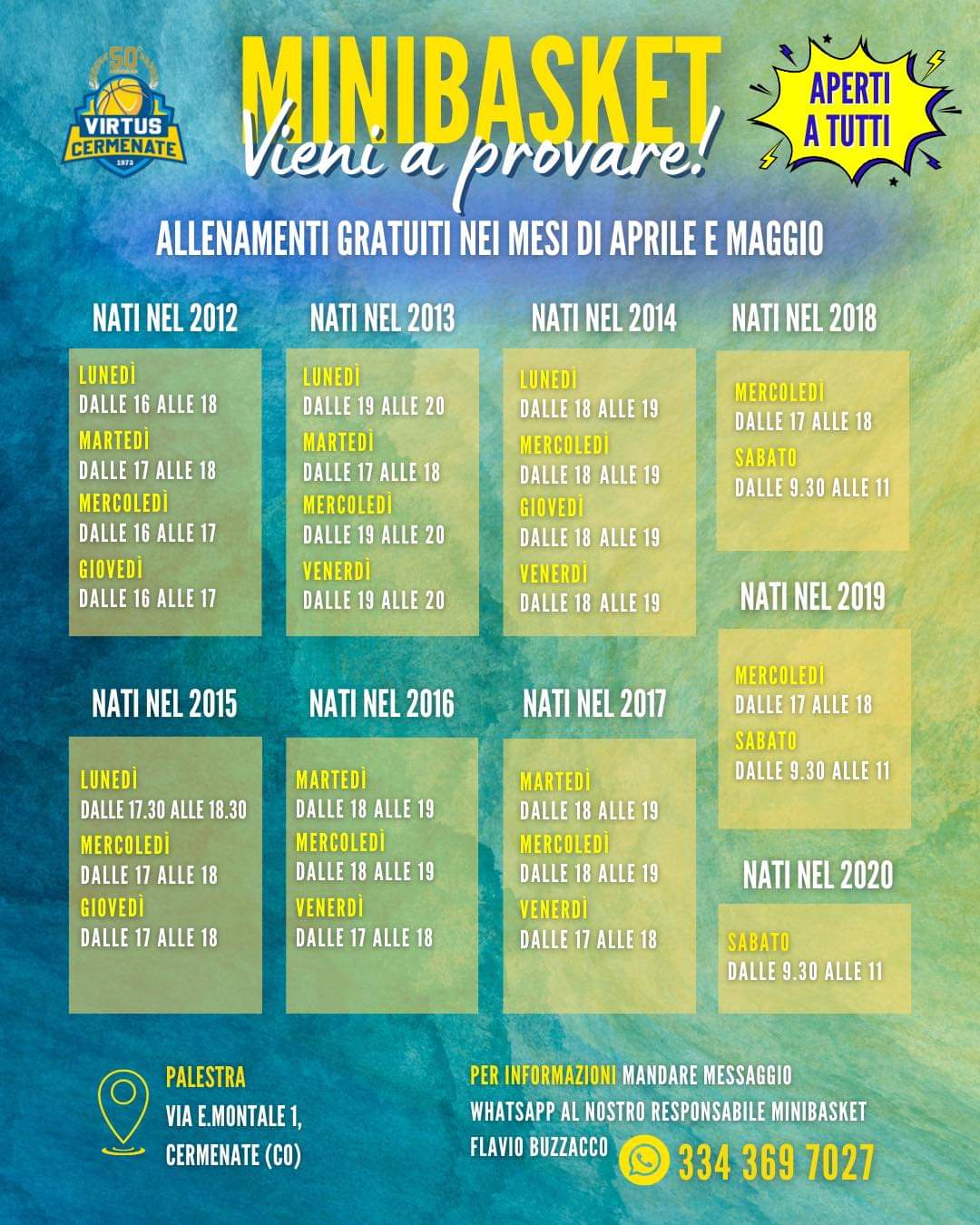 Nei mesi di aprile e maggio la Virtus Cermenate apre le sue porte a tutti i piccoli atleti che vogliono venire a scoprire il mondo del basket!!