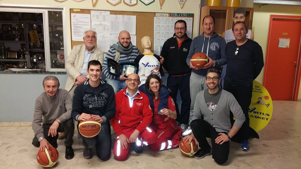 Gli allenatori Angelo Vago, Teo Semoventa, Ale Bianchi, l'istruttore Davide Camagni, i soci Augusto Bianchi, Stefano Molteni, il socio e custode di tutti noi Ernesto Pietrobon e l'atleta dela Sb 83 Mattia Melli hanno conseguito l'abilitazione all'uso del defibrillatore donatoci da VERGA VINI. Un particolare grazie va a Giancarlo Verga che, anche questa volta, ha pensato a noi, ai formatori della CRI di Cermenate e a tutti i corsisti. In questo momento Emma Pini, la nostra istruttrice del minibasket, sta conseguendo il medesimo diploma a Comocuore. A ottobre procederemo con la formazione di altri dieci virtussini.