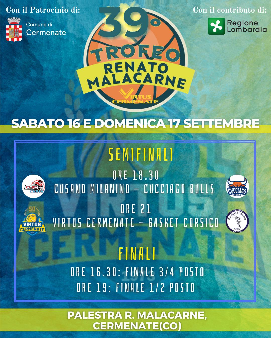 Cermenate si aggiudica la 39° edizione del Trofeo Malacarne battendo in finale i coriacei Bulls di Cucciago. La differenza di categoria tra le due squadre si vede fin dai primi minuti di gioco con i locali che, trascinati dai canestri di Lepri e Tremolada, chiudono il primo quarto avanti 29-16. Nel secondo periodo lo scarto si amplia e Cermenate raggiunge il massimo vantaggio 65-39 al 24'. Gli ospiti continuano a lottare e riescono a rientrare fin sul -13