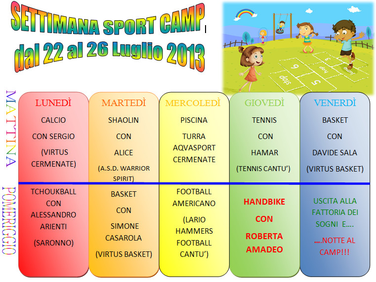 Dal 10 giugno al 2 agosto 2013 la Virtus Pallacanestro propone anche per questa estate SPORT CAMP, giunto ormai alla 3°edizione.