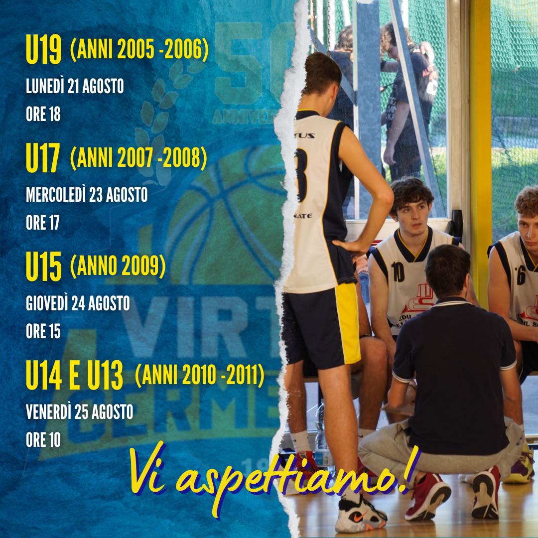 - U17 (anni 2007 e 2008): Mercoledì 23 agosto ore 17